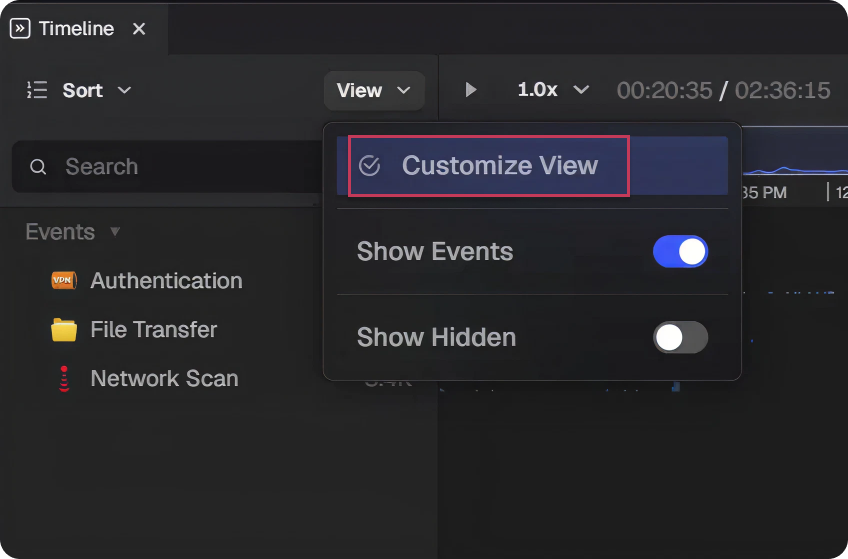 - Within the timeline hover over a protocol you would like to hide and select the 3 dots next to the protocol → Hide Selection.