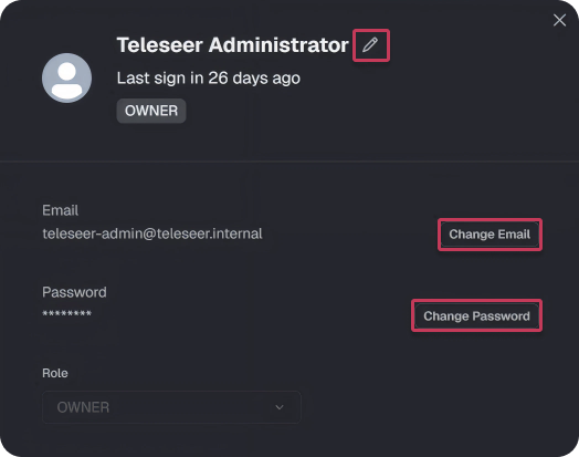 Note: When you sign up with your Google account, you can't make changes to your email address or password in Teleseer.